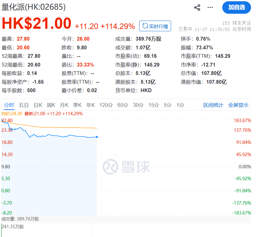 今日上市 量化派登陆港交所开盘大涨165.31%