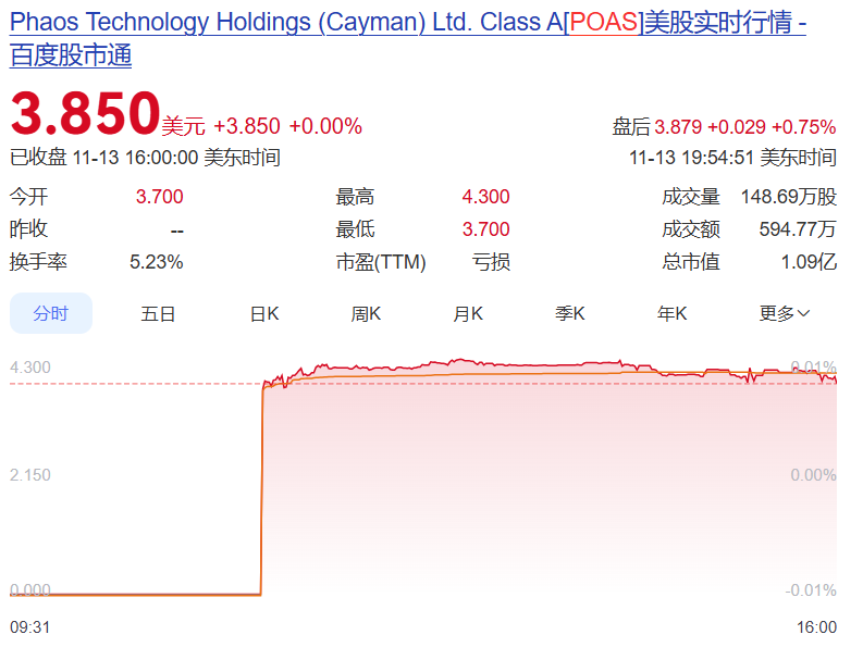 当地时间11月12日晚,美国历史上持续时间最长的政府停摆终于结束,企业进入资本市场通道亦重新开启。停摆结束的第二日,IPO市场迎来3只新股,共募集资金2.8亿美元,3家新股均在纽交所上市。 1、PhaosTechnology(POAS) 首日开盘,Phaos Technology每股报3.7美元,较发行价下跌7.5%。盘中低位盘旋,至收盘每股报3.85美元,跌幅3.75%,总市值1.09亿...