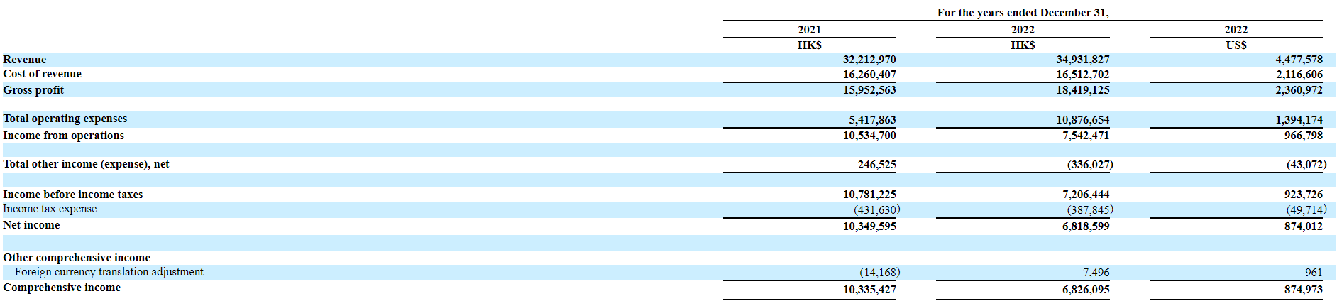 2021-2022年度,移动财经的营收分别为3221万港元、3493万港元(448万美元),这期间相应的净利润分别为1035万港元、683万港元(88万美元)。