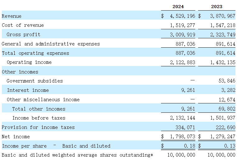 2023-2024财年(截至3月31日),均富集团营收分别为387万美元、453万美元,相应的净利润分别为128万美元、180万美元。